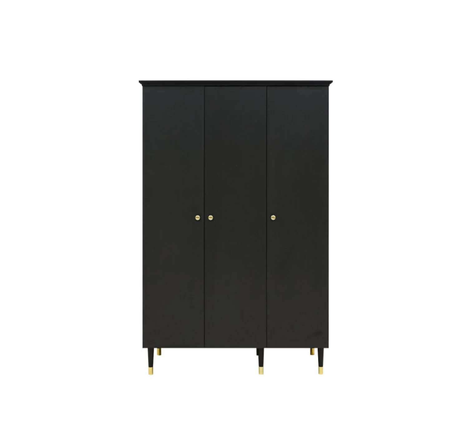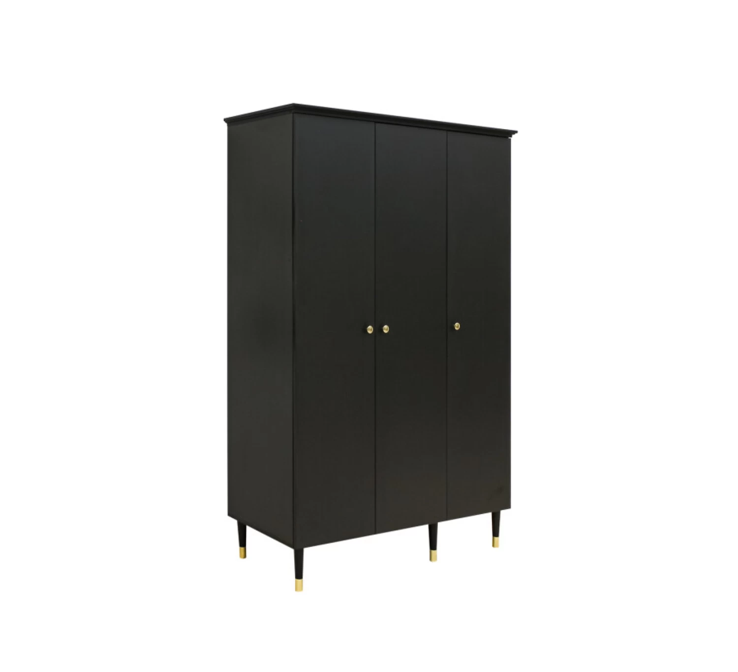 Deze mooie 3-deurskast Cloë van Bopita is een echte eyecatcher in de babykamer. De kast is uitgevoerd in een combinatie van mat zwart met gouden accenten. Hierdoor krijgt de kast een warme luxe uitstraling. Het interieur bestaat uit een brede hangroede en verschillende legplanken, waarvan de meeste in hoogte verstelbaar zijn. Zo kun je de kast dus helemaal naar je eigen wens en smaak inrichten. Combineer de 3-deurskast met de andere meubelen uit de serie Cloë.