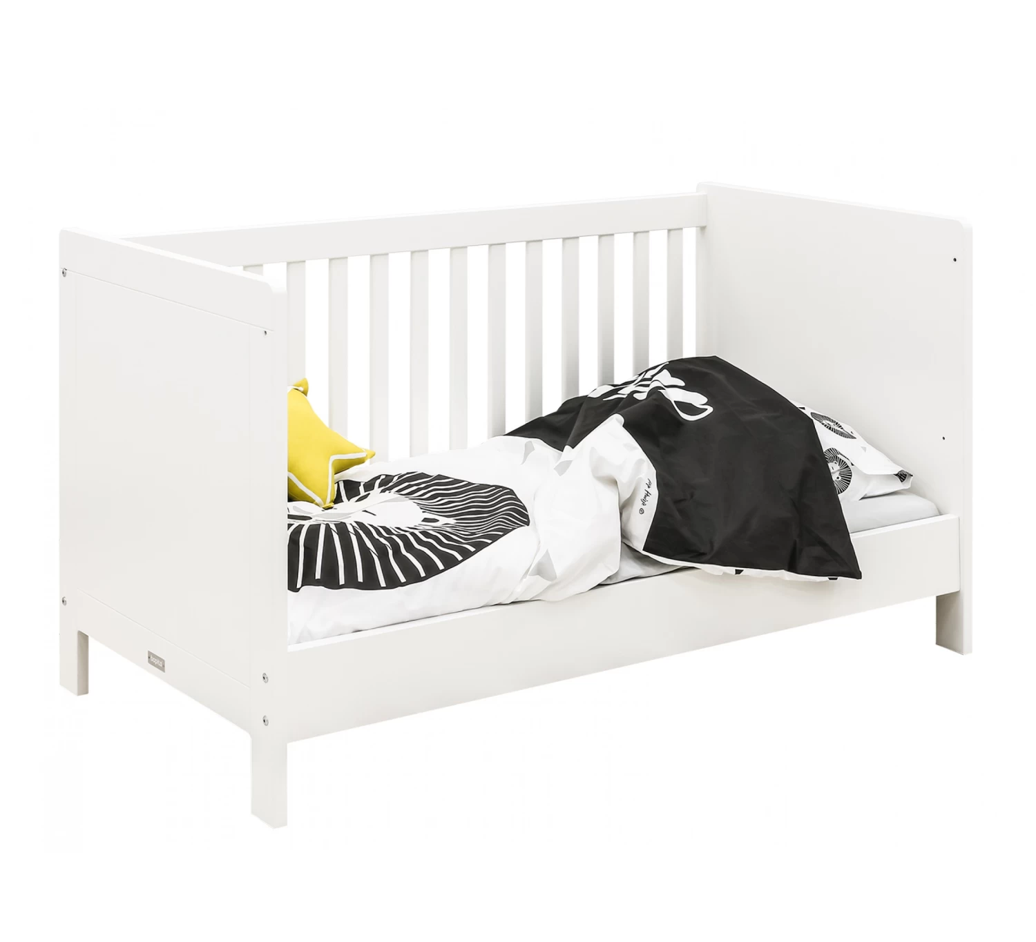 Dit babybed uit de serie Thijn van Bopita is om te bouwen van een ledikant met spijlen naar een peuter bedbank zodat de kleine zelf kan in- en uitstappen en hieraan kan wennen. Bedbodem, spijlenrek en lage zijde voor de bedbank worden standaard meegeleverd. De bodem van het spijlenbed is in hoogte verstelbaar. Omdat het bed in beide varianten 70×140 cm meet, heb je genoeg aan één matras. Doordat het bed om te bouwen is, heb je extra lang plezier van dit bed.