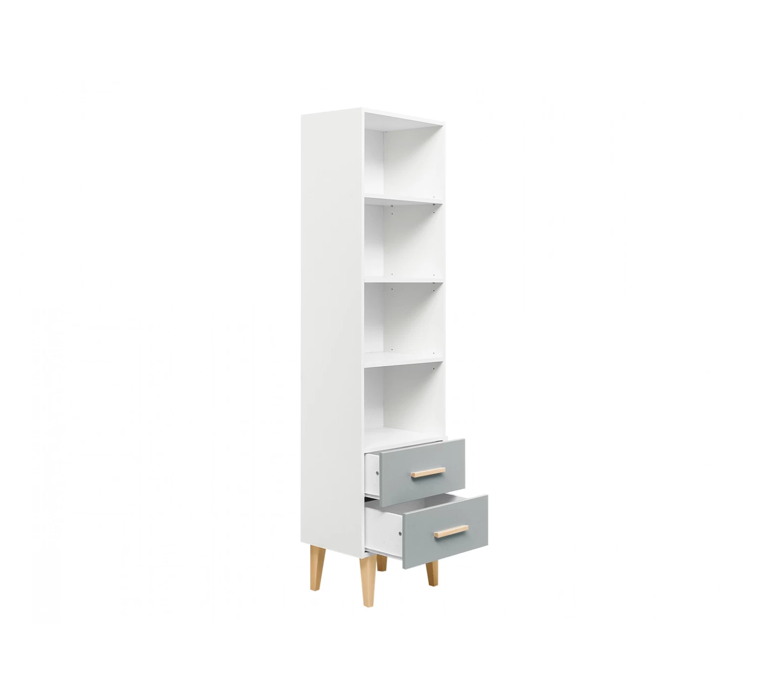 Berg al je (studie)boeken op in deze mooie stijlvolle boekenkast Emma van Bopita. De boekenkast is voorzien van kenmerkende ranke beukenhouten poten en twee laden. De boekenkast wordt geleverd met drie legplanken, zodat je alle spullen mooit kunt presenteren.