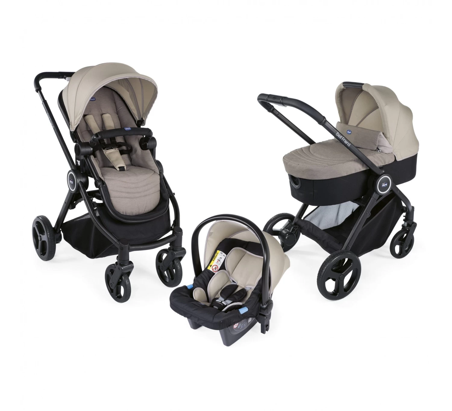 De Trio Best Friend Light Crossover is de stoere off-road all-in-one kinderwagen van Chicco. De wandelwagen wordt geleverd met frame, reiswieg, zitting en autostoel! Als extra ontvangt u een regenhoes voor de zitting cadeau en het dekje van de reiswieg kan tevens worden gebruikt als voetenzak. Kortom een zeer complete kinderwagen voor een goede prijs!