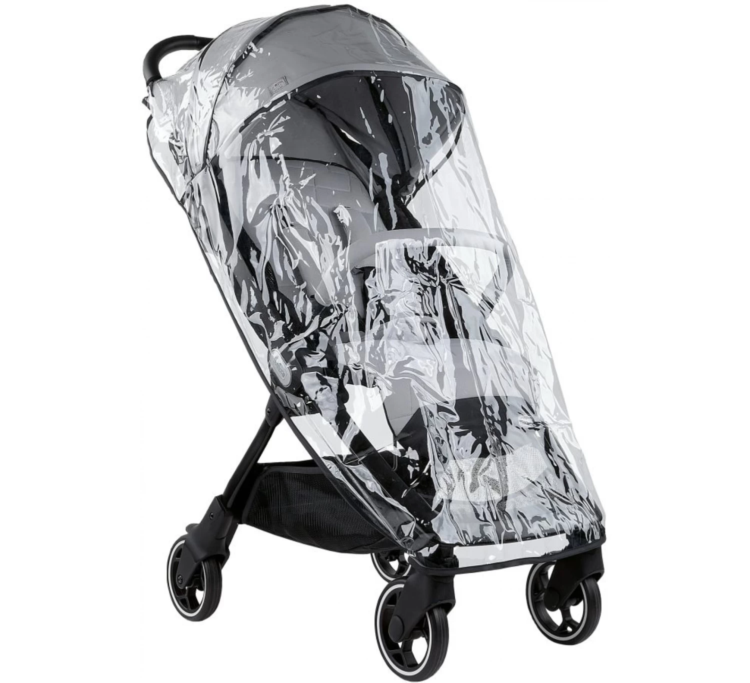 Bijgeleverd wordt een regenhoes en handige transporttas.Met de transporttas kan je de ingeklapte WE buggy op de rug dragen.