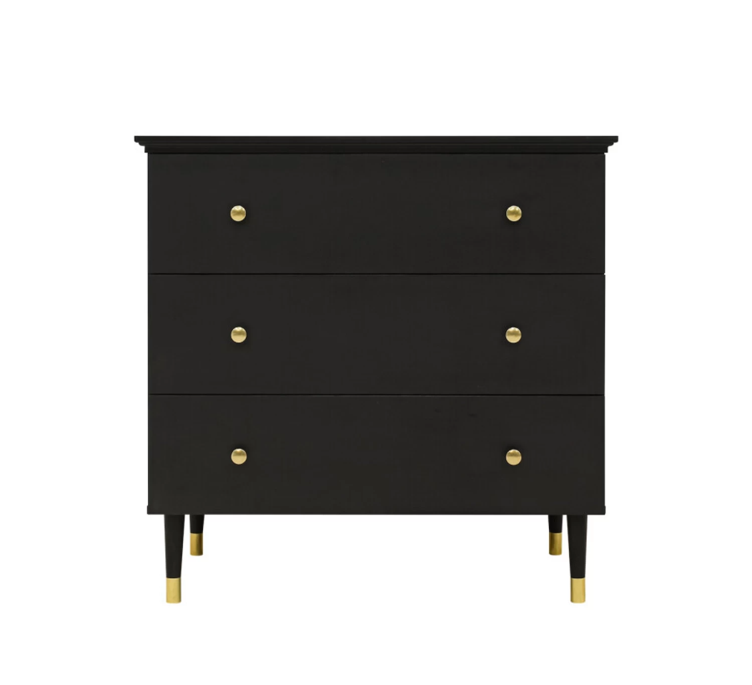 De commode uit de serie Cloë heeft drie ruime lades om al je kleding en spulletjes goed op te kunnen bergen. De commode staat op ranke poten met gouden accenten. Deze gouden accenten komen ook terug in de handgrepen van de lades. De combinatie van de gouden accenten en de mat zwarte afwerking geeft de serie Cloë een warme luxe uitstraling. Je kunt deze commode ook combineren met het bijpassende wandrek Cloë en uitbreiden met de barrier Uno. Met de barrier kun je het blad vergroten, zodat je je kindje veilig kunt verschonen.