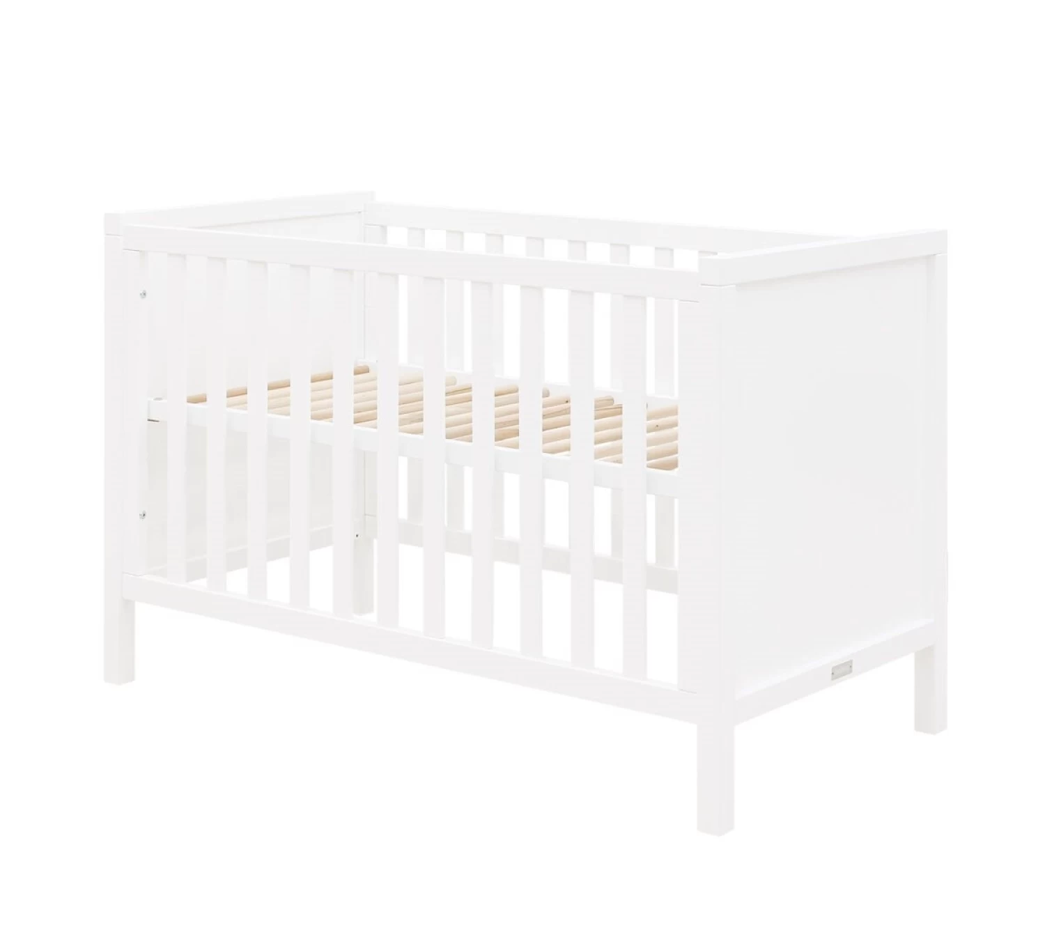 Ledikant 60×120 van de serie Corsica is afgewerkt met een witte dekkende lak op waterbasis. Het hoofd- en voeteneind van dit ledikant zijn voorzien van een dikke omlijsting. De bedbodem is in hoogte verstelbaar. Zodra het kindje zich zelf kan optrekken aan de spijlen, kan je de bodem in de laagste stand zetten. Zo blijft het bed een veilige slaapplek. Het bedje wordt geleverd inclusief bedbodem, maar zonder matras. Combineer met de andere meubels van de serie Corsica.