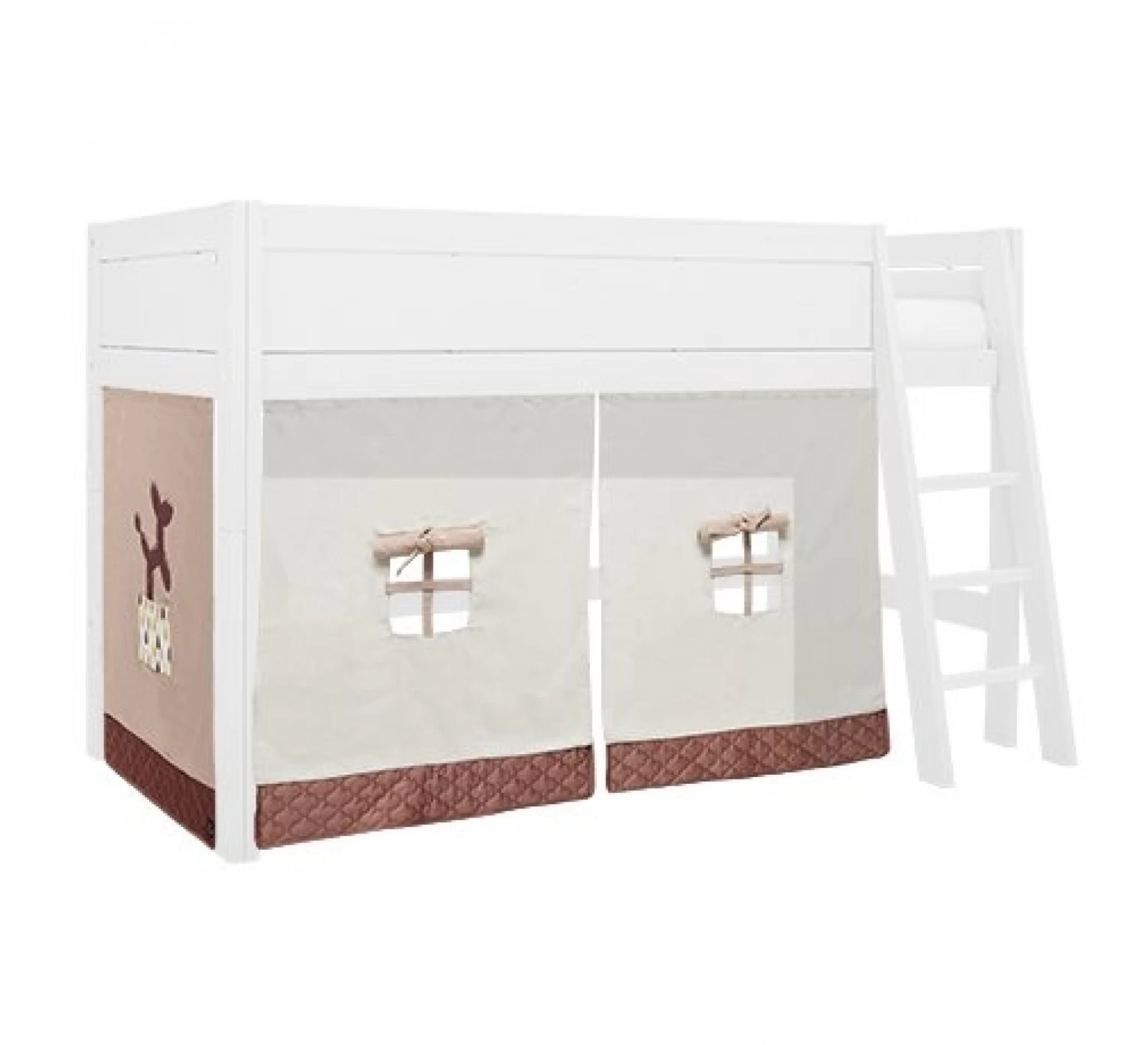 Deze grappige speelgordijn is van het merk Lifetime Je kunt deze gordijn bevestigen aan een semi hoog bed van 128cm hoog en de stoffen is gemaakt van 100% katoen.