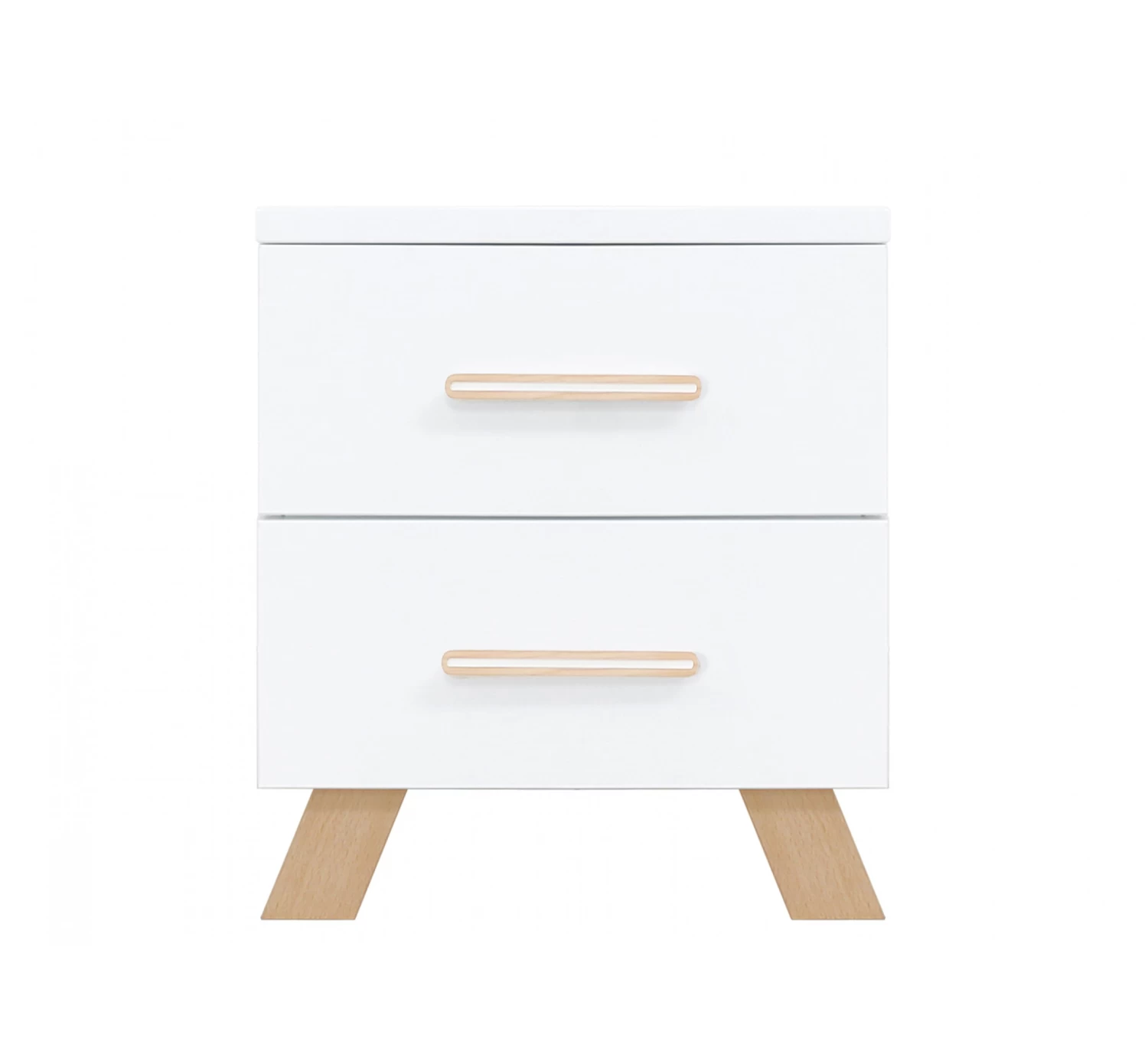 Het nachtkastje Lisa van Bopita heeft een eigentijdse uitstraling door de combinatie van dekkend wit en blank gelakte beukenhouten poten. Het kastje is voorzien van twee ruime lades voor het opbergen van spullen. Dit nachtkastje is ideaal te combineren met het Lisa bed 90x200cm.