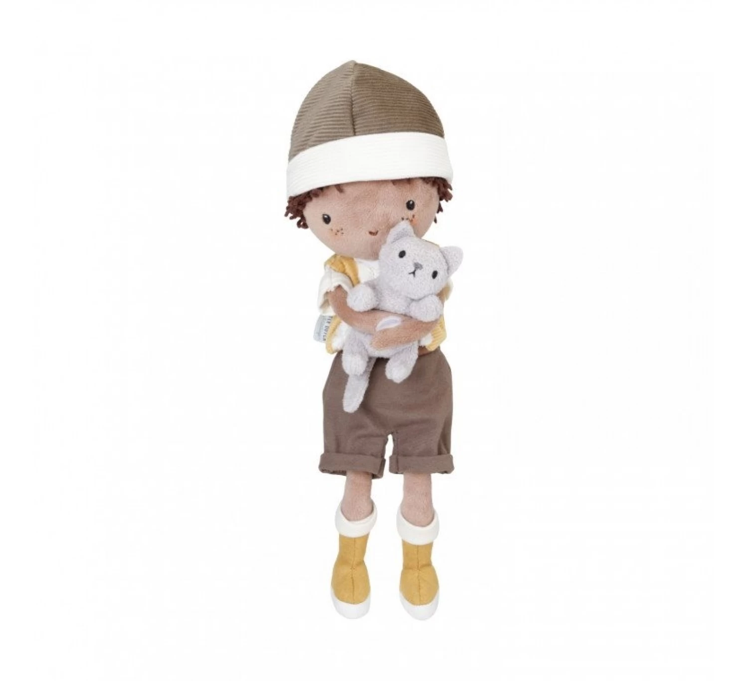 Dit is de stoere Jake. Deze pluche knuffelpop met zijn stoere muts en gele regenlaarzen kan niet wachten om geknuffeld te worden. Jake wordt je nieuwe beste vriend. Hij zal er altijd zijn als je wilt spelen of een dikke knuffel nodig hebt. Samen met zijn grijze kat zoekt hij graag naar kleine schatten. Jake is zacht en knuffelig, 35 cm lang en is verpakt in een mooie opbergdoos.