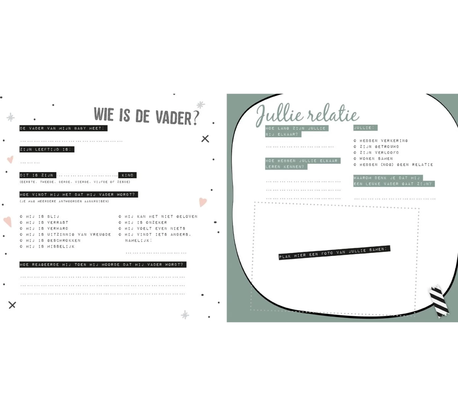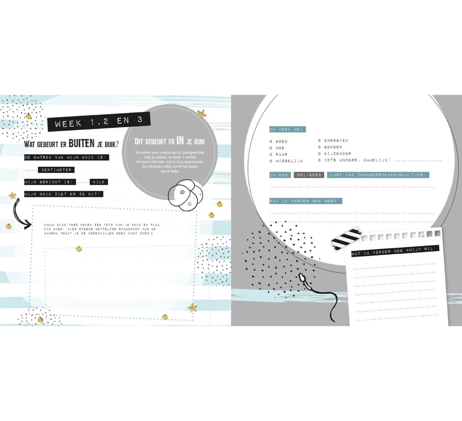 Vul negen maanden lang elke twee weken alle bijzonderheden over jouw unieke zwangerschap in, plak foto’s op of maak tekeningetjes en noteer hoe jij je voelde. Dankzij dit boek kunnen jij, je partner en je kind later deze speciale periode week voor week herbeleven!