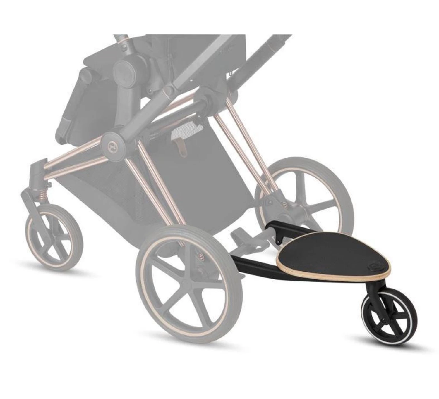 Met het meerijdplankje van Cybex kan ook het broertje of zusje meeliften met de kinderwagen. Door het meerijdplankje aan de Priam kinderwagen te bevestigen ontstaat er een staanplaats voor de grotere broer of zus.