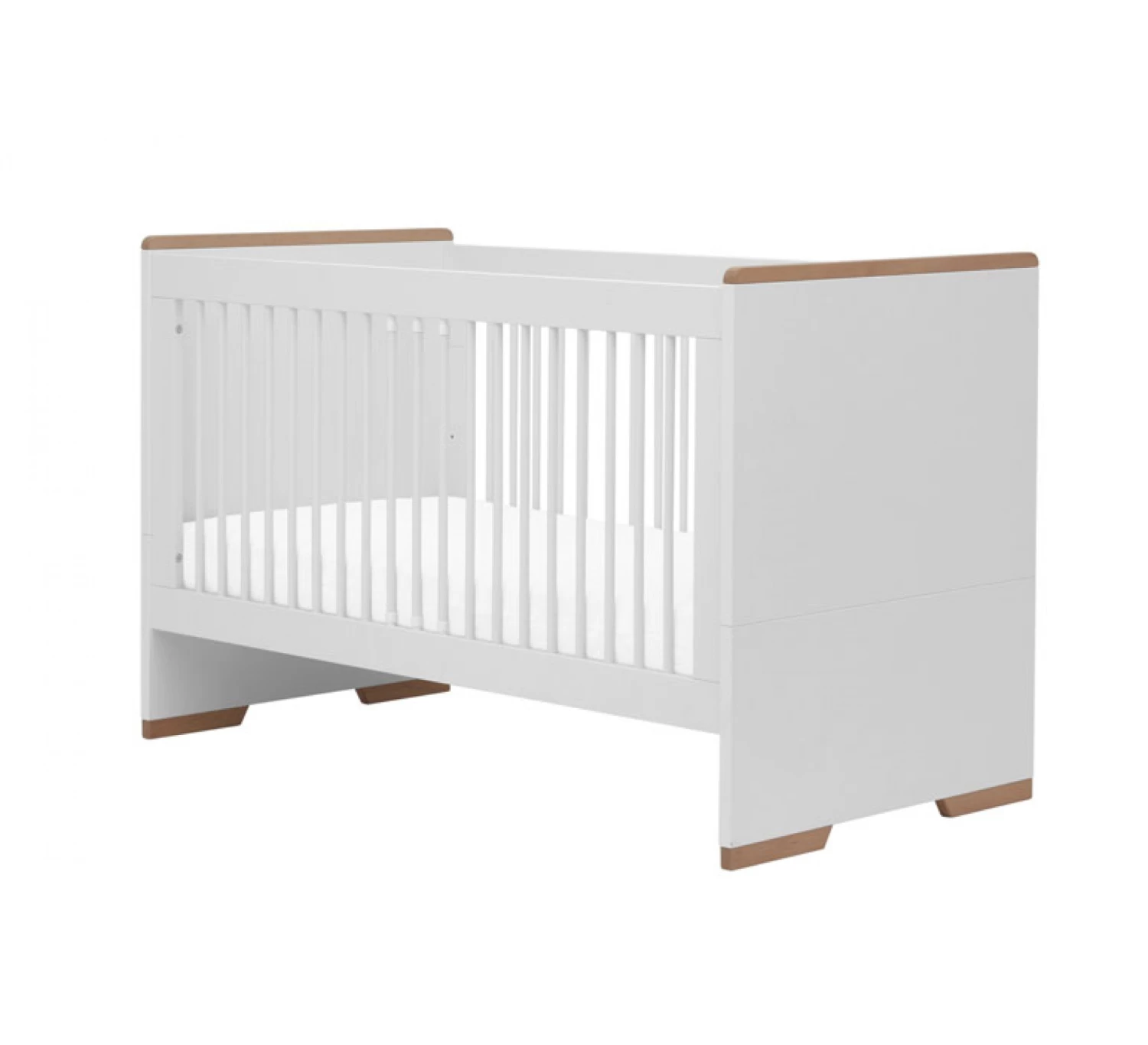 Deze stijlvolle doorgroeibed van Pinio is gemaakt van MDF en beukenhout en maakt onderdeel uit van de Snap collectie. Het doorgroeibed is verstelbaar in drie verschillende hoogtes en heeft drie spijlen die er uit kunnen worden gehaald. Het matras is niet inbegrepen. Een bijpassende lade dat precies onder het bed past is apart verkrijgbaar. Wanneer je kindje groter wordt kan het bed omgebouwd worden tot een normaal bed.
