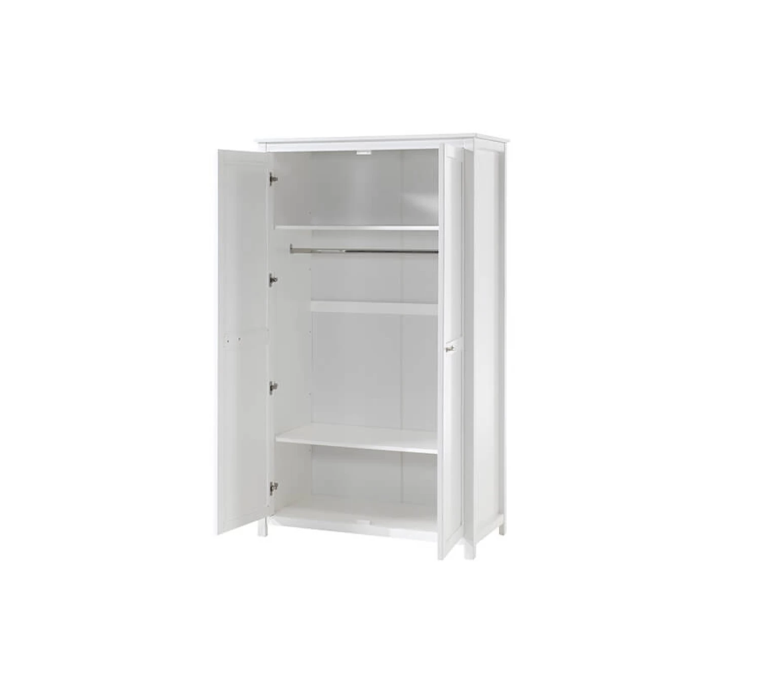 Berg al je spullen op in deze ruime 2-deurskast Stella van het merk Vipack. De kast is voorzien van twee legplanken en een hangroede, zo ben je er zeker van dat je al je spullen netjes kwijt kunt.