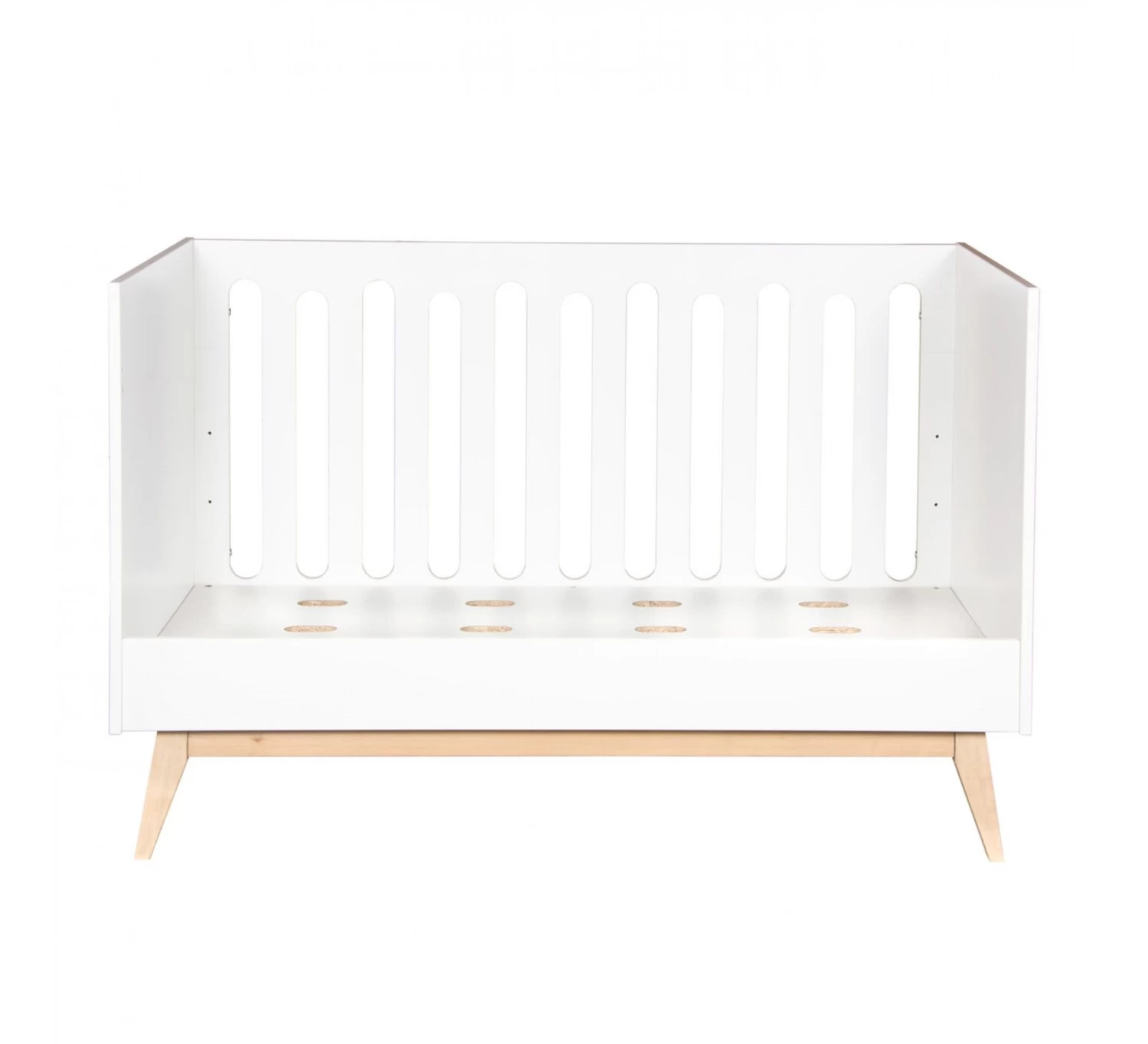 De bodem is in drie hoogtes verstelbaar. Zodra je kindje zich gaat optrekken en wil staan, is het tijd de bodem te verlagen. De zijpanelen zijn voorzien van openingen die ruim genoeg zijn voor een goede ventilatie, maar waarin je kindje niet zomaar vast kan komen te zitten. Doordat de poten een houten kleur hebben ziet het bedje er mooi stijlvol uit en past deze in vrijwel iedere inrichting. De meubelen uit de Trendy collectie van Quax zijn verkrijgbaar in verschillende kleuren.